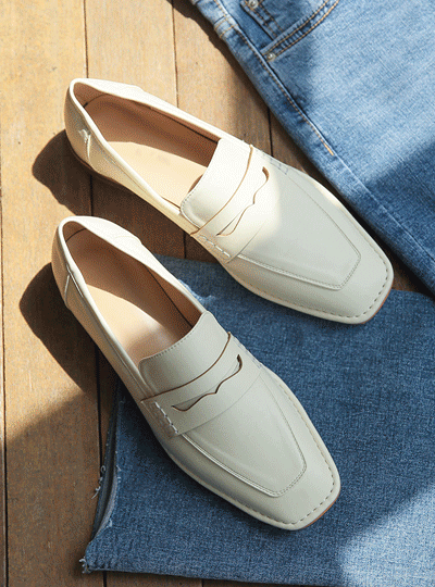 Penny ステッチ フラット スクエア ローファー