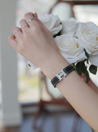 Her ステッチ カーフスキン スナップ ブレスレット