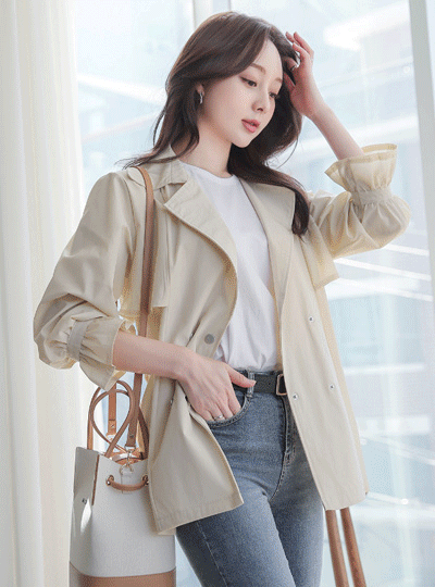 コーティング ダブルボタン サファリジャケット トレンチ ショートジャケット
