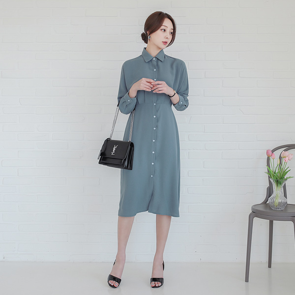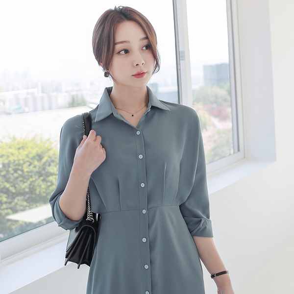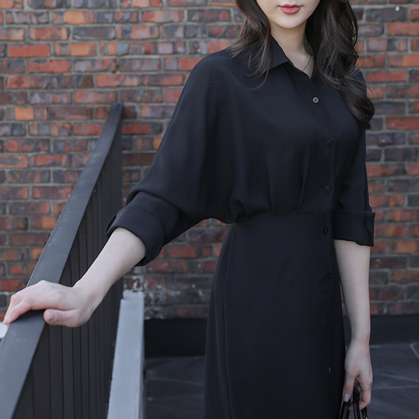 フルライン ピンタック バックリボン Batwing Sleeve シャツ ワンピース