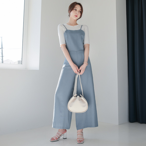 クーリング 着心地のいい サスペンダー ワイド ジャンプスーツ