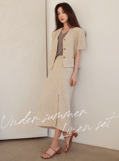 下に サマー リネン 半そで ノーカラー ジャケット