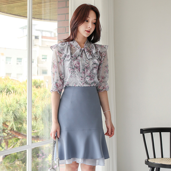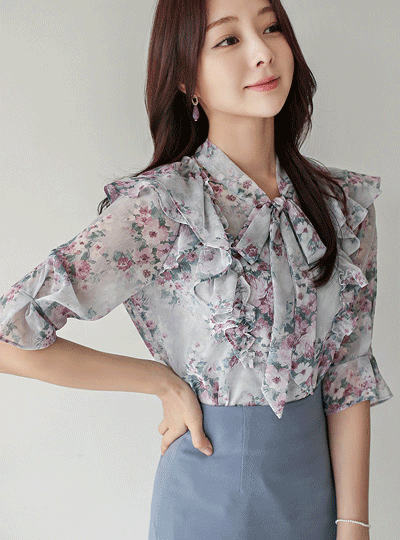 二重 ラッフル 牡丹 シフォン ブラウス