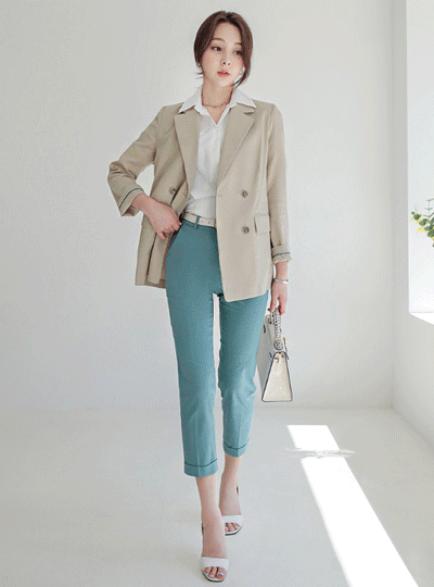 ヘリンボーン 刺繍 袖配色 リンネンコットン ジャケット