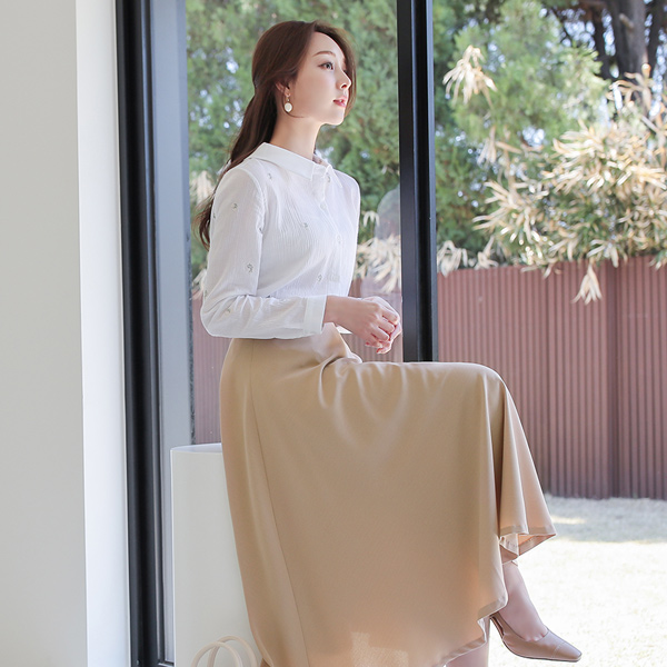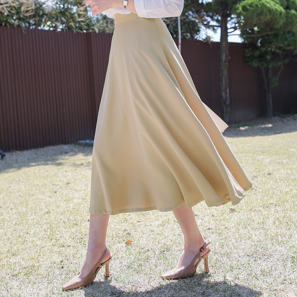パステル スリム ハイウエスト ロング フレア スカート