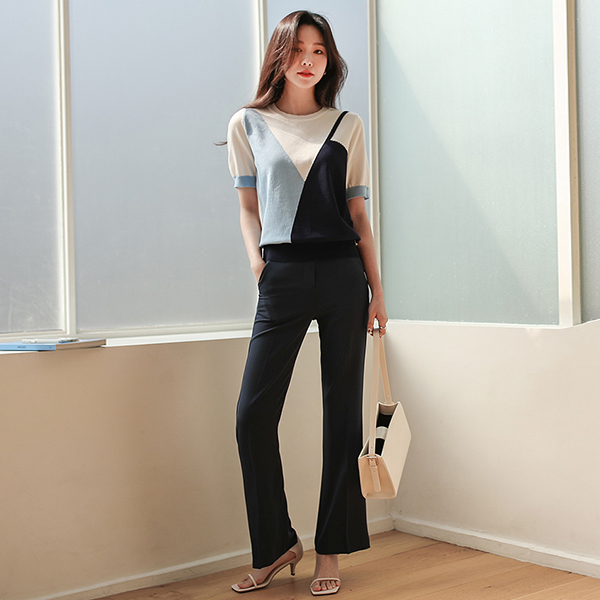 Oblique ビビッド ミックスカラー 半袖 ニットティーシャツ