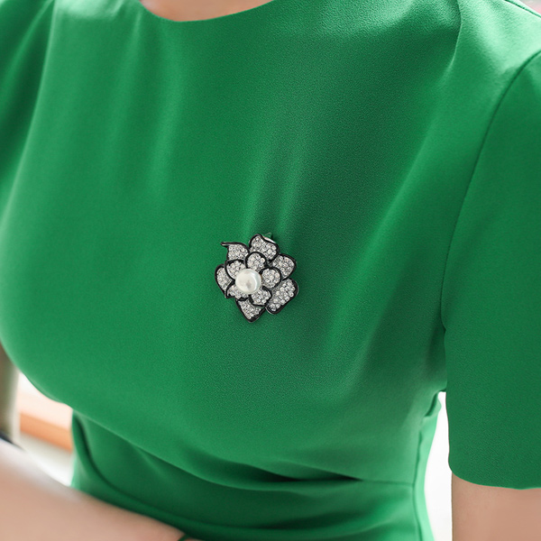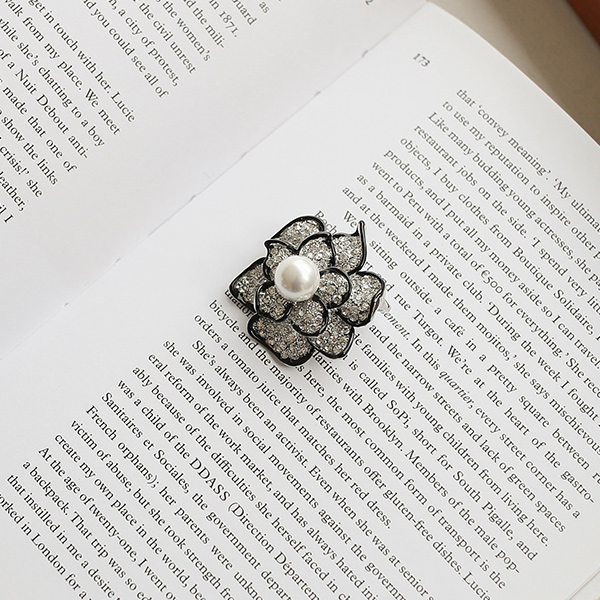 ブラックライン 真珠 キュービック ローズ ブローチ