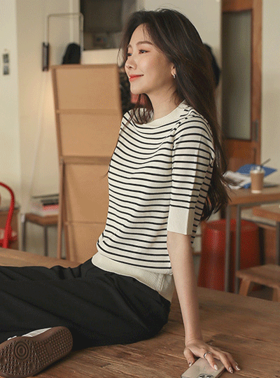 Oblique ビビッド ミックスカラー 半袖 ニットティーシャツ
