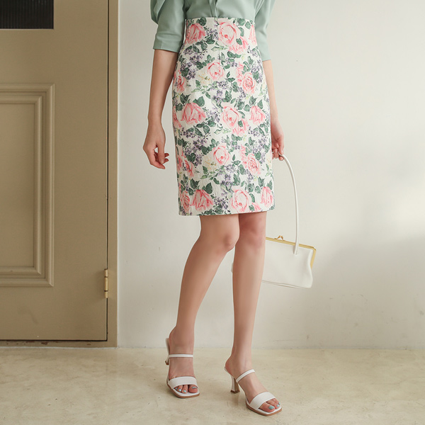 ジャカード ローズ 弾力 スカート