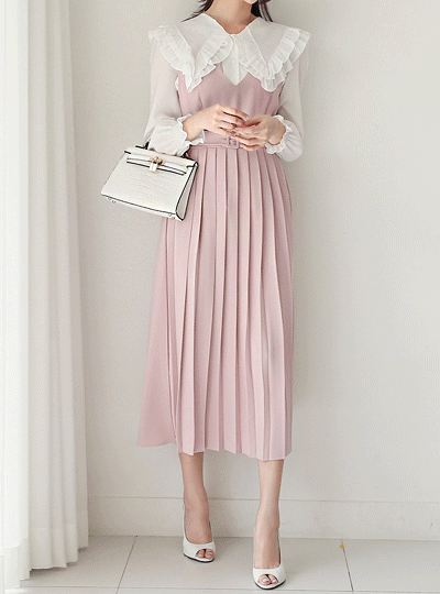 フロント プリーツ ビュスチエ ワンピース