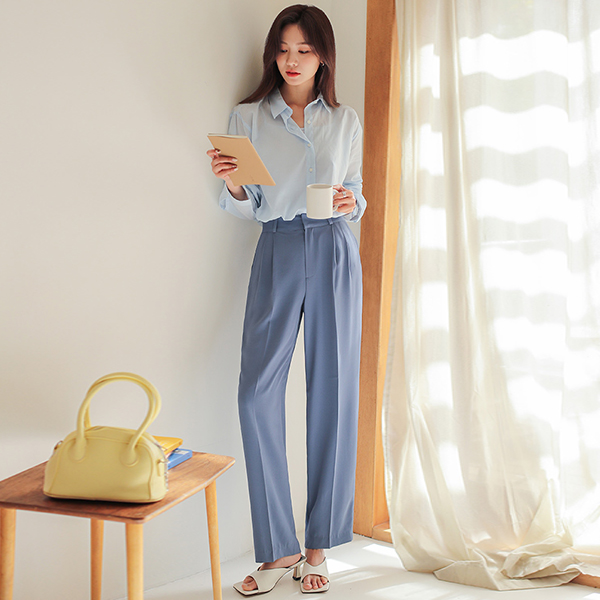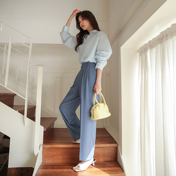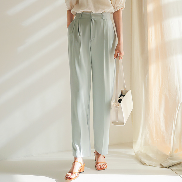 ハイウエスト 弾力 ワイド ピンタック スレックス