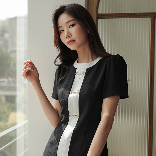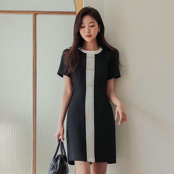 配色ライン ゴールドリング Horsebit ワンピース