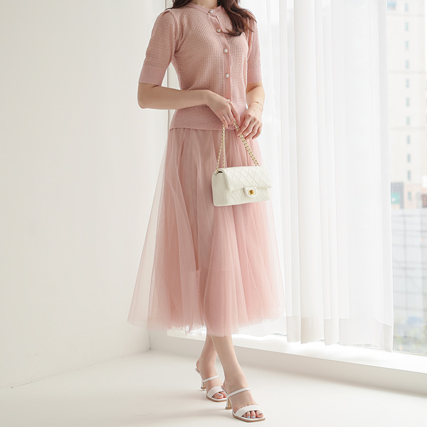 ロマンチック メッシ レイヤード バンディング シャスカート