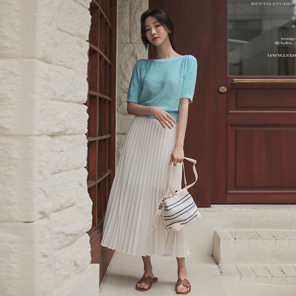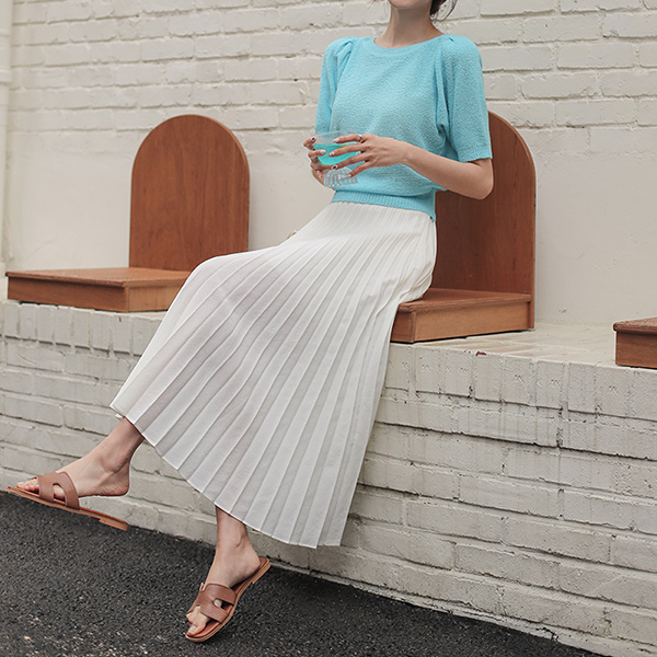 ボートネック ビビッド カラー はち パフ袖 ニット