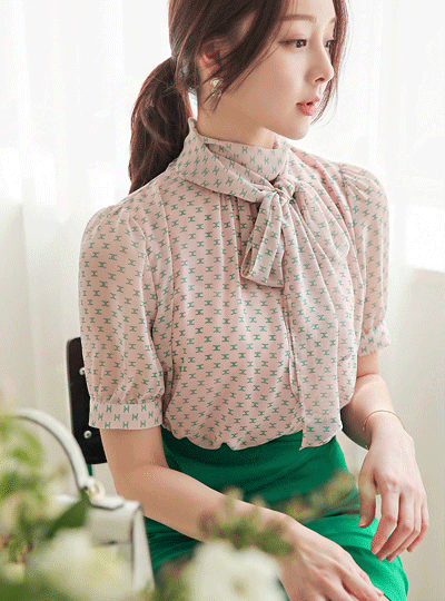 フェム スカーフネック 二重 シフォン ブラウス