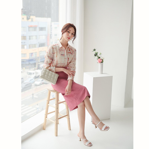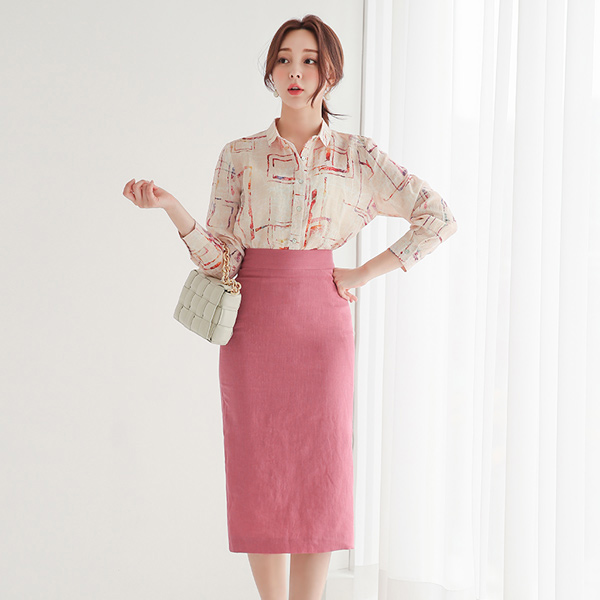 鮮明 チェック 捺染 リネン シャツ