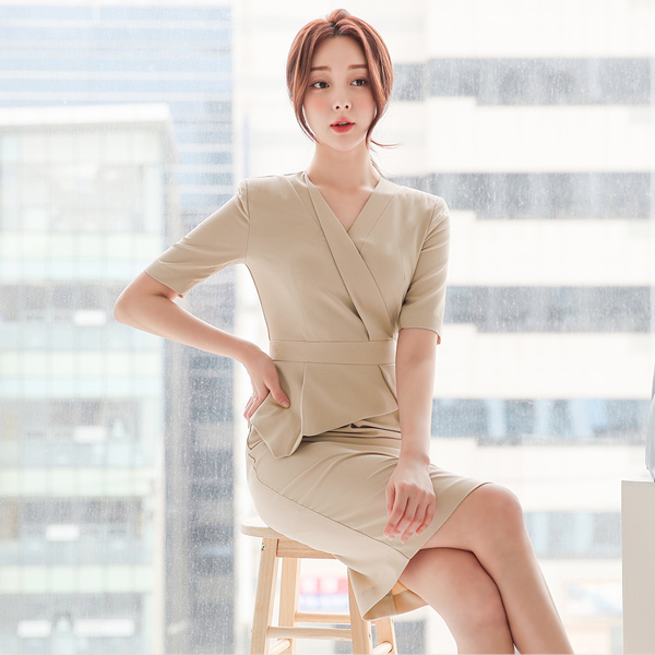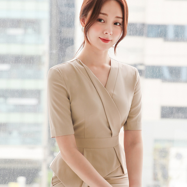 ノーカラー ボカシ リネン タッチ ペプラム ジャケット