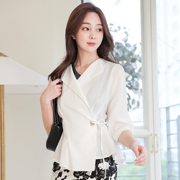 ライト シースルー ウイングカラー ペプラム ブラウス&ジャケット