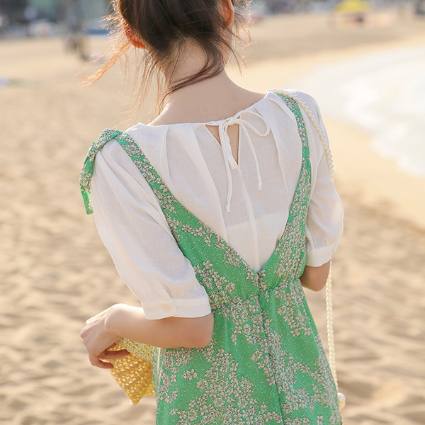 ショルダー リボン ビュスチエ シフォン マキシ ワンピース