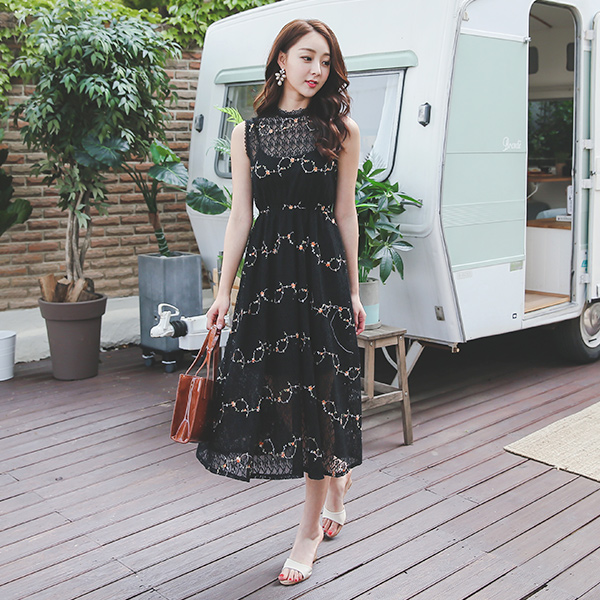 [スクラッチ商品]春季 花柄 レイス ロングワンピース