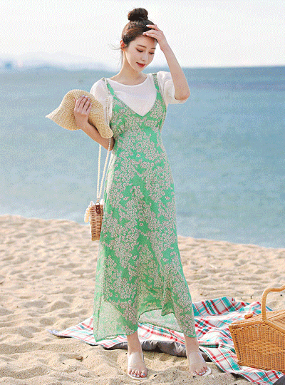 ショルダー リボン ビュスチエ シフォン マキシ ワンピース