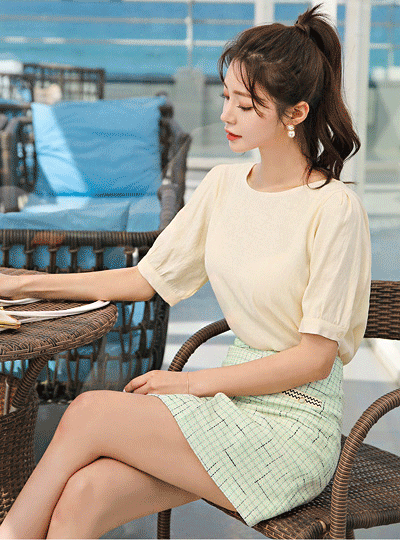 バックリボン パフ袖 クーリング ブラウス
