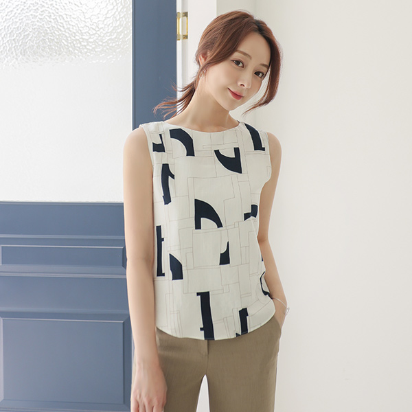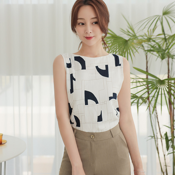 厚底 パタン リネン スリーブレス ブラウス