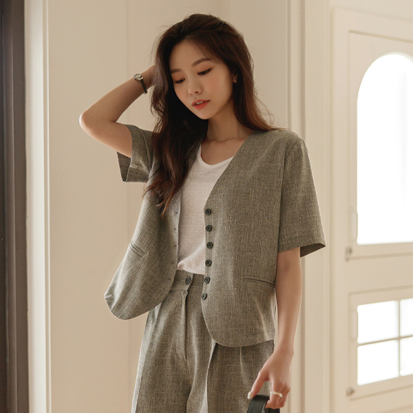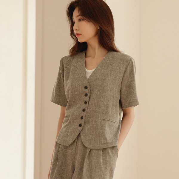 톰보이 ボカシ ノーカラー ジャケット