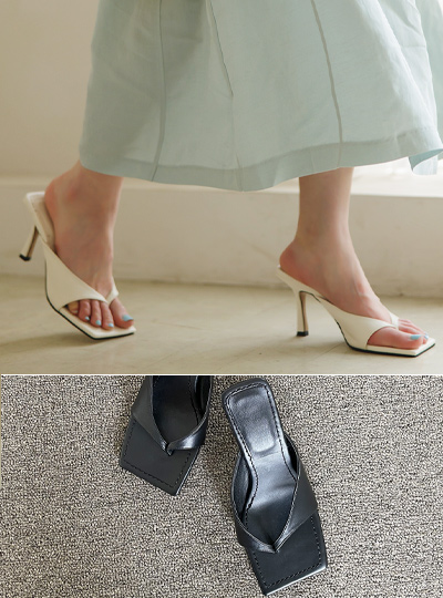 シャープ スクエアトー フリップ・フロップ サンダルヒール