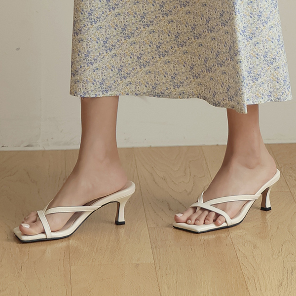 ダブル ストラップ フリップ・フロップ スクエア クッション スリッパヒール