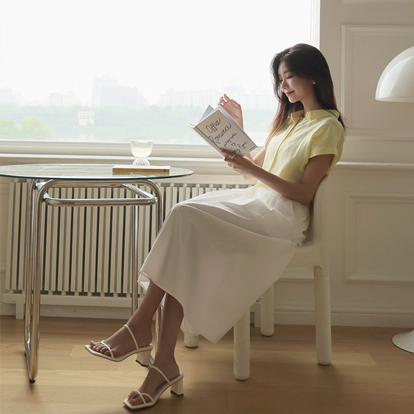 ダブル ストラップ フリップ・フロップ スクエア クッション スリッパヒール