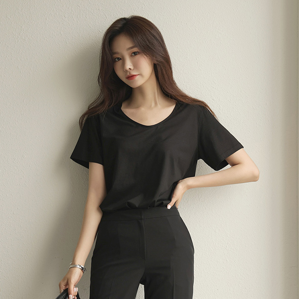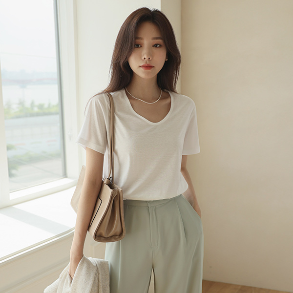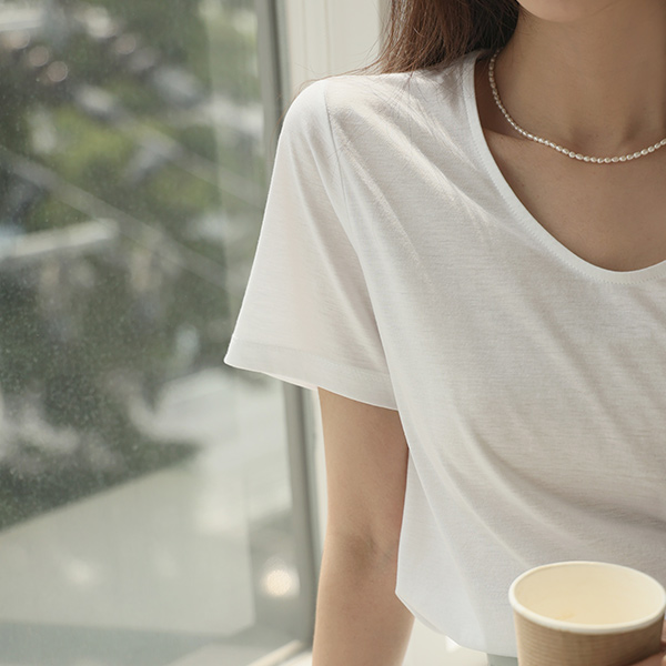 テンセル ソフト リンネンファブリック デーリー Uネック ティーシャツ