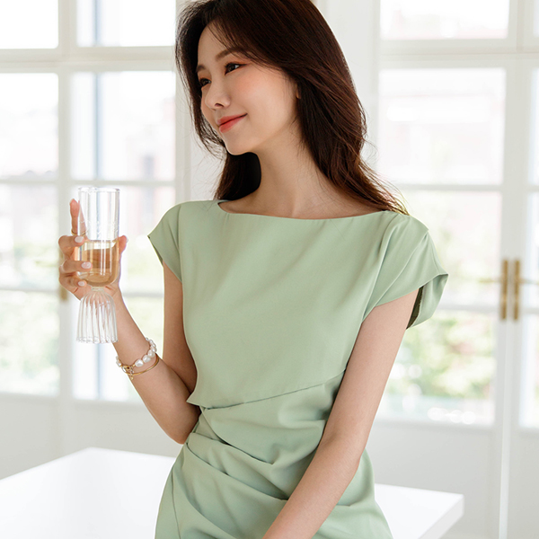Grace サイド シャーリング ロングワンピース