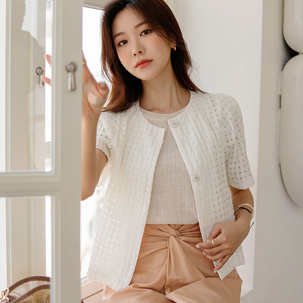 スクエア パタン シースルー ブラウス ジャケット