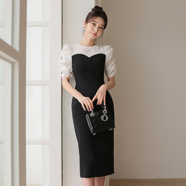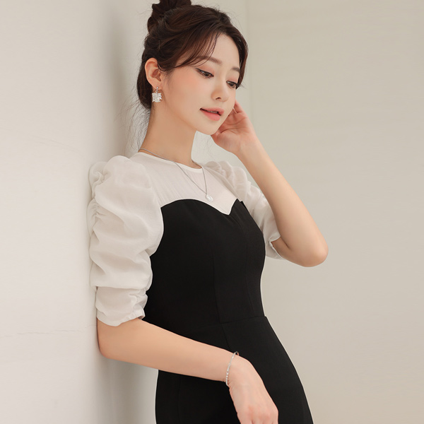 シャーリング スリーブ ビュスチエ レイヤード リンクル ワンピース