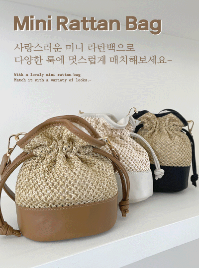 配色 レザー ラウンド ミニ ラタン·バッグ