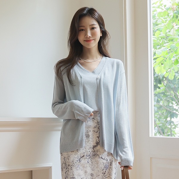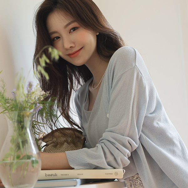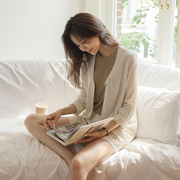 サマー 亚麻纱 ワンボタン 着心地のいい カーディガン