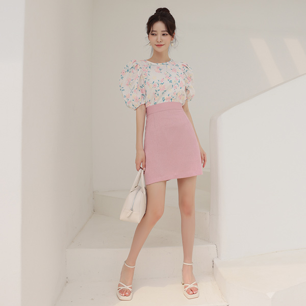 キャンデー 花柄 刺繍 パフ袖 ブラウス