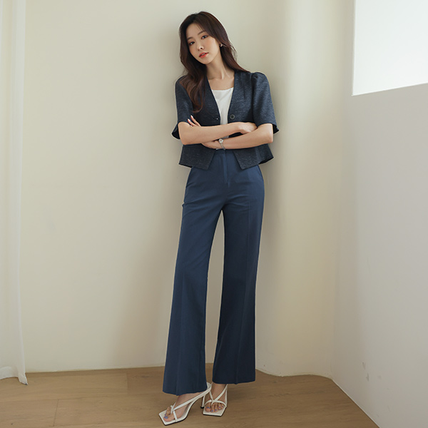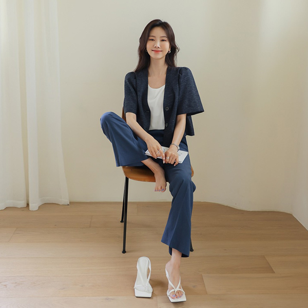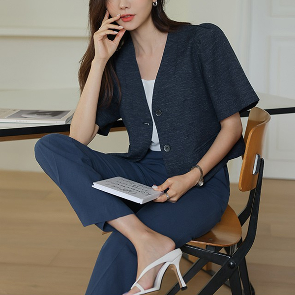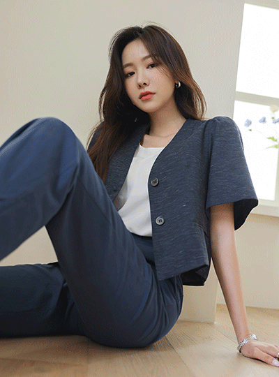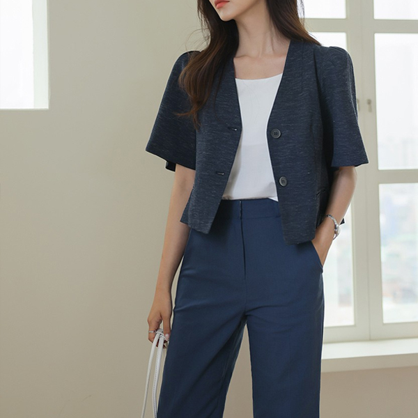 バックパック ボタン パフ袖 クロップド リネン ジャケット