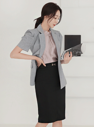 レディー パフショルダー テーラード 弾力 ジャケット