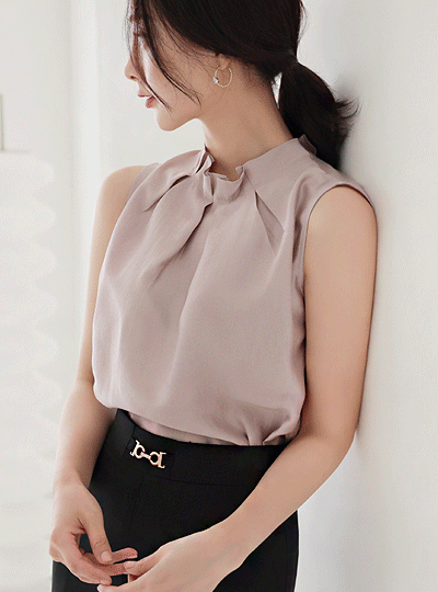 シルキー ピンタック プリルネック スリーブレス ブラウス