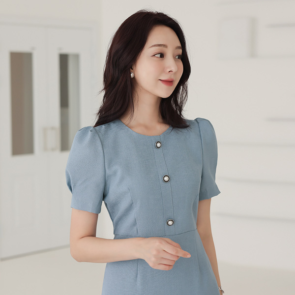 メタル 真珠ボタン シングル Hライン ワンピース