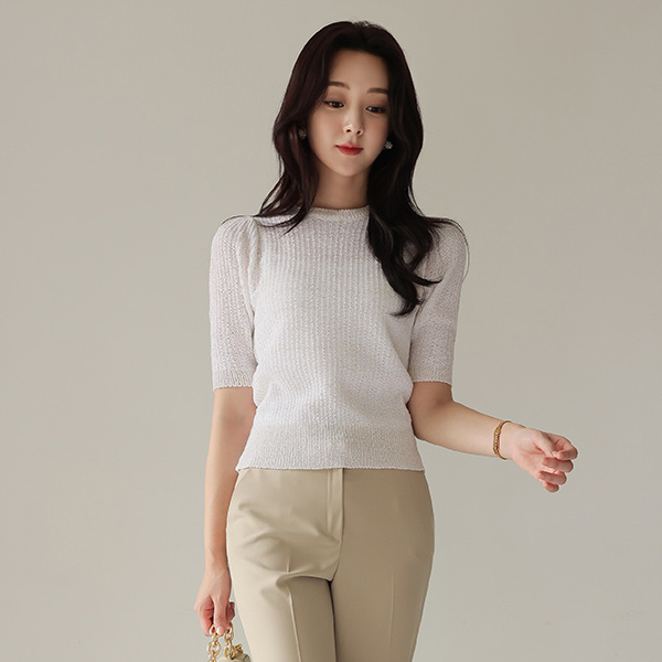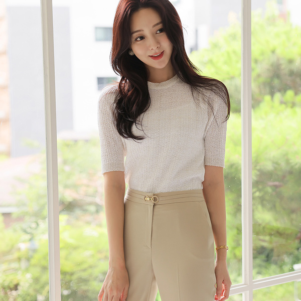 ゴール真珠 チェック はち 織った ニットティーシャツ