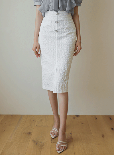 シルバー輪 真珠ボタン トリミング Hライン スカート