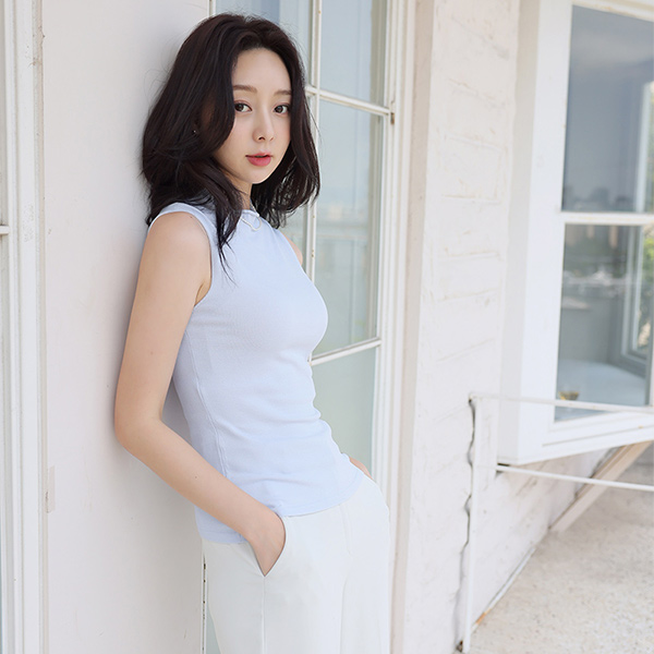 ラウンド セミハイネック スリーブレス ニット