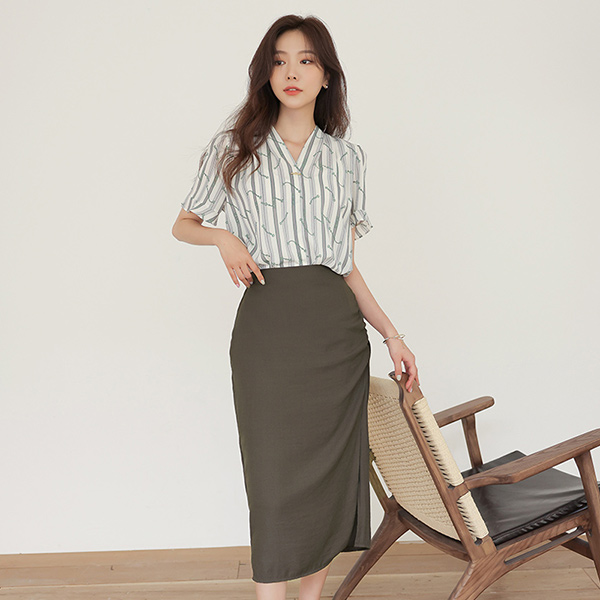 ラグジュアリー ゴールドバー装飾 チェーンパターン ブラウス
