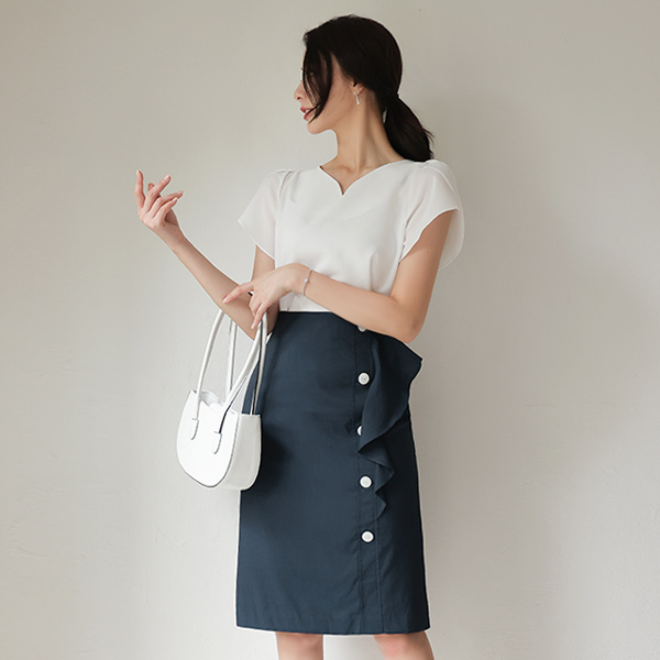 リネン リンネンファブリック 翼 シャーリング ブラウス