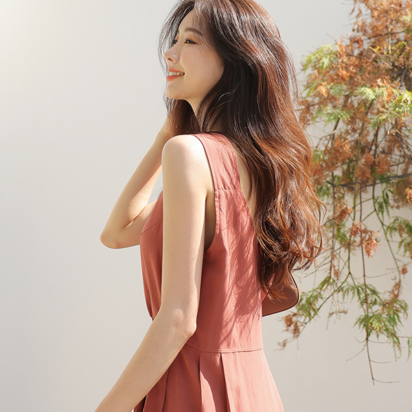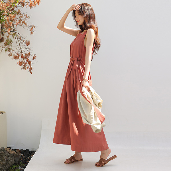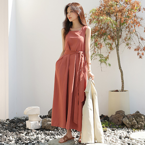 リネン スクエアネック ラップスタイル ロングワンピース