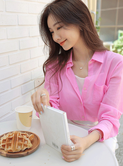 リンクル シースルー シングルカラー シャツ