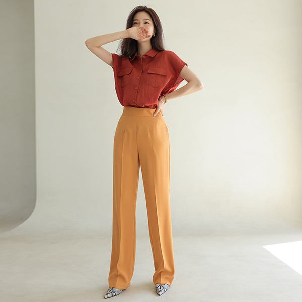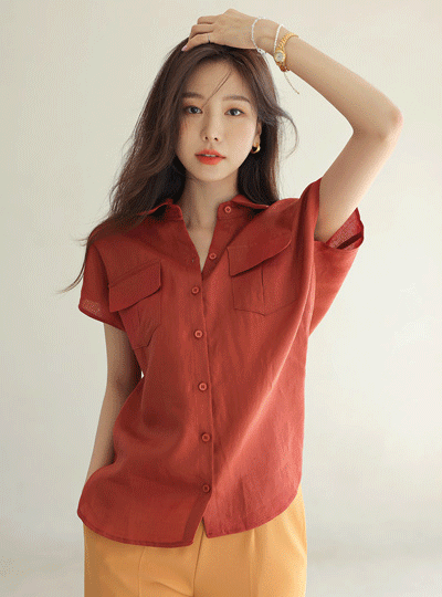 ビビッド カラー キャップップ リネン ブラウス